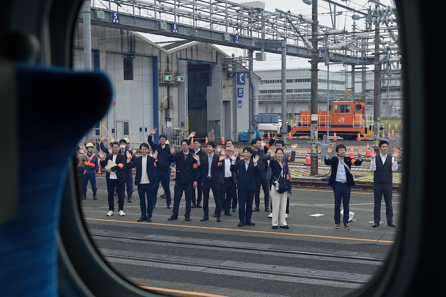 On the opening day, the 25th, a total of 562 participants joined from Tokyo, Shinagawa, Shin-Yokohama, Mishima, Shizuoka, and Hamamatsu stations. The group-only charter, operated by N700S set J38, departed Tokyo Station from Track 14 at 10:24 a.m. After picking up participants at each station, it reversed beyond Hamamatsu Station and entered the spur track leading to the Hamamatsu Works, where riders experienced the N700Ss self-propulsion system powered by its onboard emergency battery.