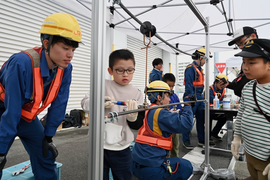 Other features included a live demonstration of a traverser that moves railcars laterally and a VR experience for operating the emergency stop button on a station platform. Displays showcased maintenance-of-way vehicles such as a crane wagon, a “Retro Bus” wrapped in a livery paying homage to the express bus design used during the transition from JNR Bus to JR Tokai Bus, and products made from recycled aluminum from the Tokaido Shinkansen. Participants thoroughly enjoyed the event.