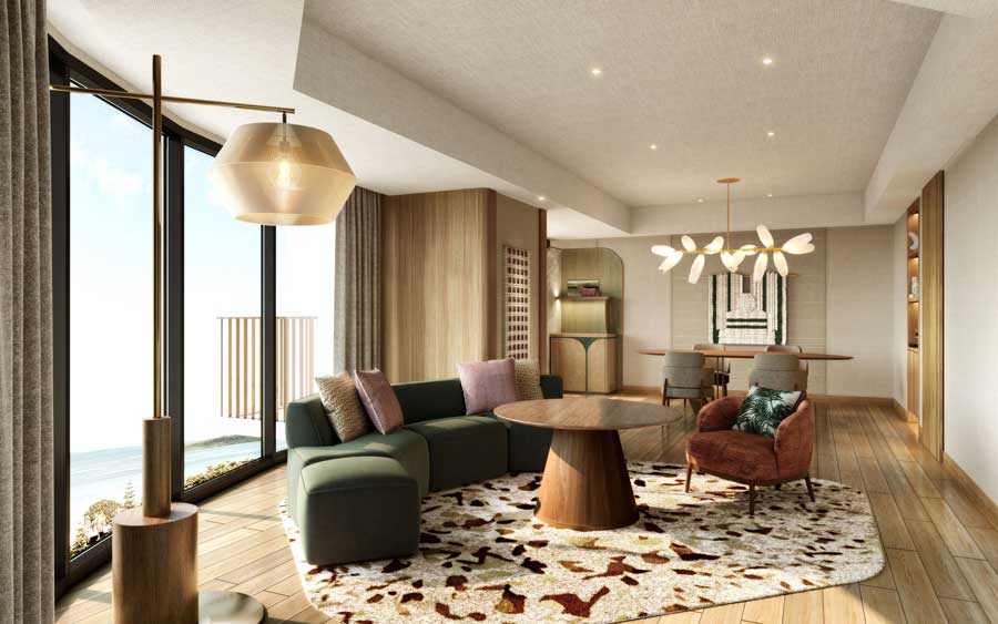 The building will have 12 floors above ground and 306 guest rooms across seven types. Guest Rooms and Deluxe Rooms each measure 35 square meters, are equipped with 55-inch TVs, USB ports, and rain showers, and are also suited for workations. There are three types of suites, totaling 20 suites. On the 10th floor, the largest 102-square-meter “King Canopy Suite” offers sweeping ocean views.