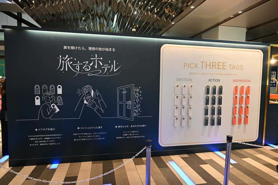 After you intuitively choose three door tags based on your “mood,” the “activities you seek in a trip,” and “travel inspiration,” hand them to the concierge at the counter to experience a roughly 90-second video tailored to your selections in a space modeled on a hotel guestroom. The pop-up will also feature scent-driven effects and a photo booth. Limited-quantity, event-exclusive fragrance door tags will be available, and five people each day who answer a questionnaire via IHG’s official LINE account will receive 50,000 points.
