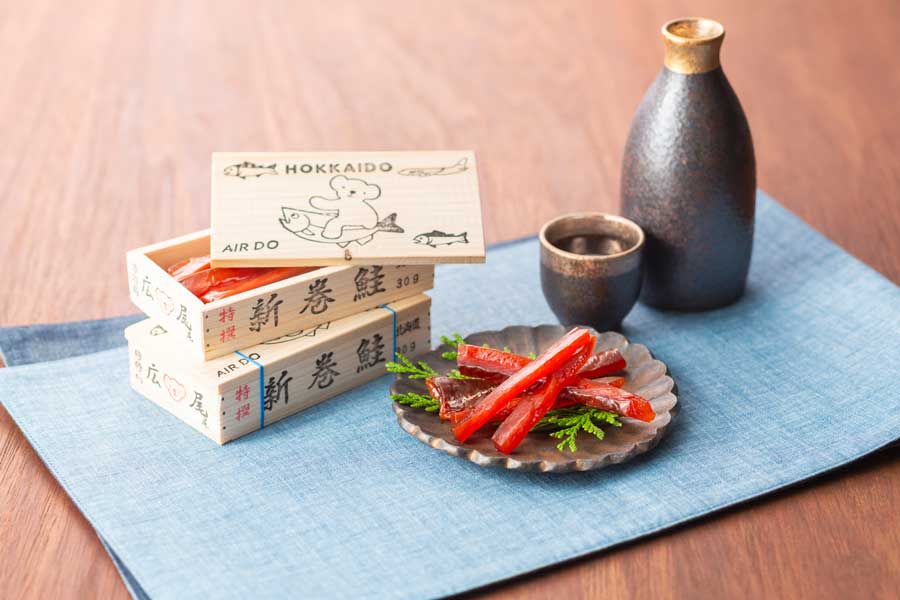 AIRDO (Japanese airline) will sell the “Bear-Do Miniature Salmon Box (with salmon jerky)” and the “Mascot Bear-Do (Fluffy Cape Ver.)” onboard its flights in Japan.