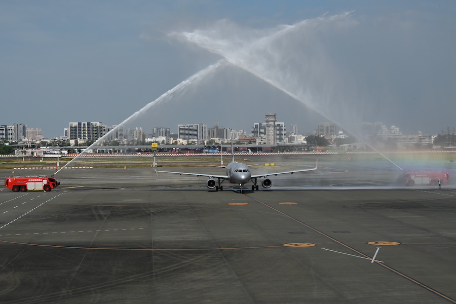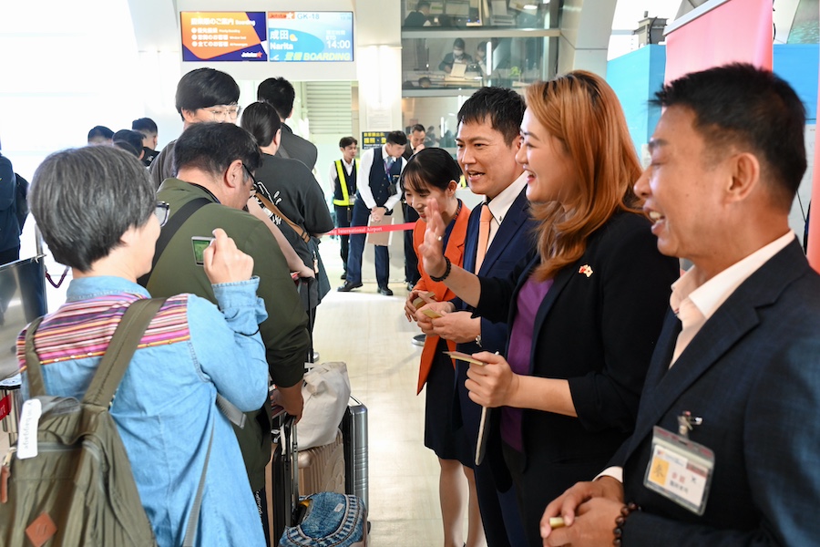 The inaugural flight from Tokyo/Narita carried 179 passengers, while the first flight from Kaohsiung carried 180 passengers.