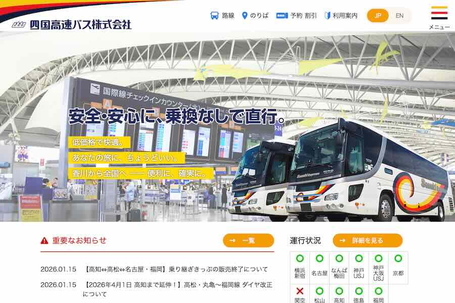 Shikoku Highway Bus will revise the timetables for its express buses on the “Takamatsu / Marugame – Fukuoka Line” and the “Marugame / Zentsuji – Kobe / Osaka / Universal Studios Japan (USJ) Line”.