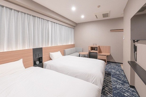 The guest rooms now consist of 169 single rooms and 18 twin rooms, for a total of 187 rooms, with 6 of the rooms reconfigured as connecting rooms that allow guests to move freely between two rooms via an interior door. Single rooms are equipped with 120-centimeter-wide beds and wide desks with spacious tabletops, while twin rooms feature separate bath and toilet areas, and the beds can be rearranged. In-room, guests can watch video streaming services such as YouTube and Netflix on a 40-inch television, and HDMI cables for connecting laptops or gaming devices are available for loan at the front desk. At the time of reservation, guests can choose their mattress type, selecting from an airweave mattress or a nishikawa AiR mattress. Some rooms are also equipped with ReFa showerheads and hair dryers.