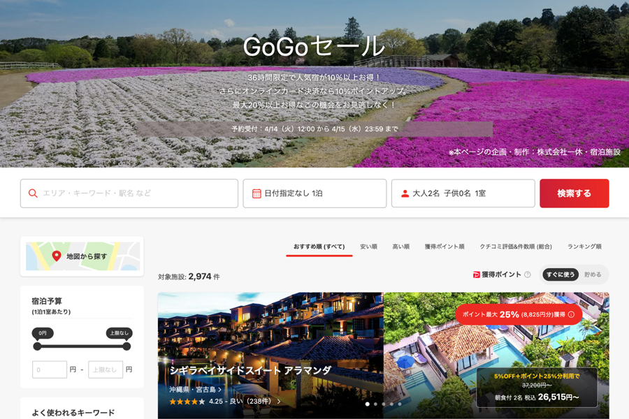 LINE Yahoo is holding the “GoGo Sale” on its Japanese travel booking site “Yahoo! Travel (Yafu Travel)” from noon on April 14 through April 15.